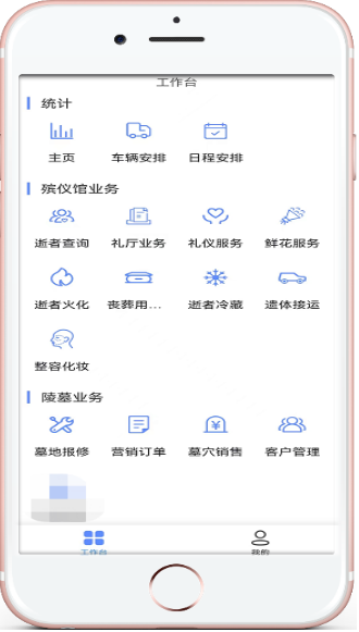 1、为更方便丧属办理业务,满足工作人员移动办理殡葬业务的要求,将殡仪馆接运、业务办理、冷藏办理、整容办理、礼厅办理、火花办理,墓园移动销售、巡检报修、云祭扫任务处理,行业监管巡查,考勤打卡,网络会议,死亡信息填报等业务纳入到移动办公领域,借助移动互联网的便利性,提升整个智慧殡葬业务办理效率。